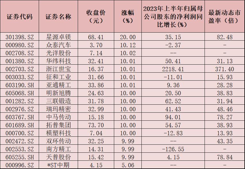 表:8月29日汽車行業(yè)漲停股一覽