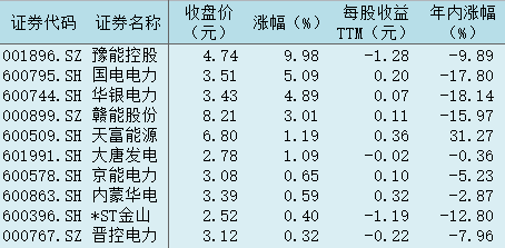 表 今日火力發(fā)電板塊漲幅前十個股一覽