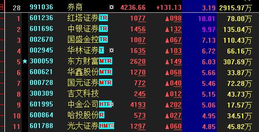 周二,被稱為“牛市旗手”的券商板塊拉升走高,截至收盤,板塊漲幅達(dá)3.19%,其中,紅塔證券、中銀證券等2只個(gè)股聯(lián)袂漲停。