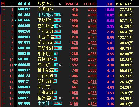 熱點(diǎn)二:煤炭石油板塊崛起漲近4%