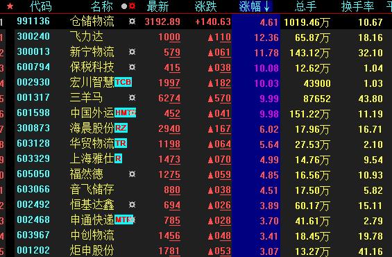 熱點(diǎn)一:倉(cāng)儲(chǔ)物流板塊飆升近5%4股集體漲停
