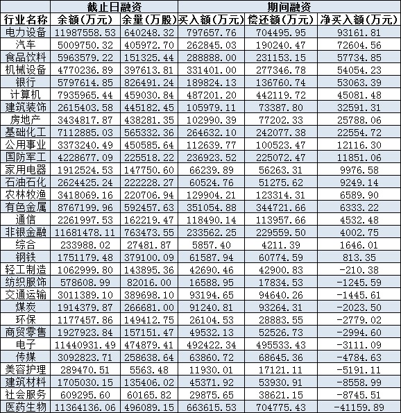 表:10月26日申萬一級行業(yè)兩融交易情況: