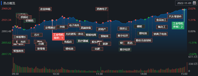 截至11月1日收盤,上證指數(shù)漲2.62%,收報2967.20點,深證成指漲3.24%,收報10734.25點,創(chuàng)業(yè)板指漲3.20%,收報2337.65點;滬深兩市合計成交額9775.5億元;北向資金凈買入61.55億元;總體來看,A股中上漲個股4348只,下跌個股470只。