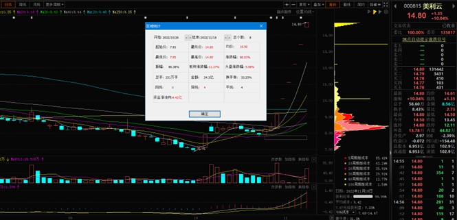 11月18日,美利云以14.80元漲停報(bào)收,漲幅達(dá)10.04%。該股自10月26日以來(lái),截至11月18日已連續(xù)8個(gè)交易日上漲,累計(jì)漲幅達(dá)86.63%。其中,最近的6個(gè)交易日中股價(jià)均以漲停報(bào)收。該股最新A股總市值達(dá)102.9億元,流通市值102.9億元。