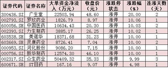 表:醫(yī)藥生物行業(yè)中10只漲停股情況: