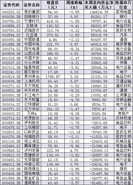 資金方面,周五,北向資金凈買入金額達(dá)43.62億元,連續(xù)3個(gè)交易日實(shí)現(xiàn)凈買入。本周北向資金累計(jì)凈買入金額達(dá)56.65億元。從前十大成交活躍股來(lái)看,本周,美的集團(tuán)、招商銀行、寧德時(shí)代等3只個(gè)股,北向資金凈買入金額均超7億元。另外,通威股份、國(guó)電南瑞、紫金礦業(yè)等個(gè)股遭北向資金凈賣出金額均超3億元。