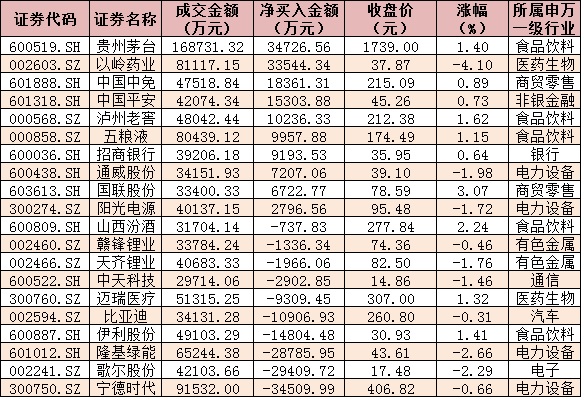 表:12月21日滬、深股通前十大成交活躍股交易情況: