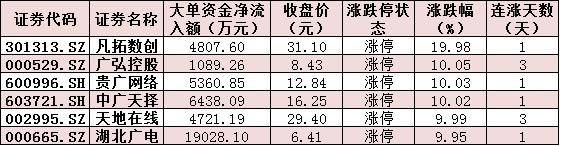表:12月23日傳媒行業(yè)中漲停股情況:
