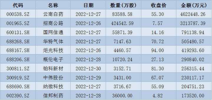表:下周解禁市值前十位(本周收盤價計算)