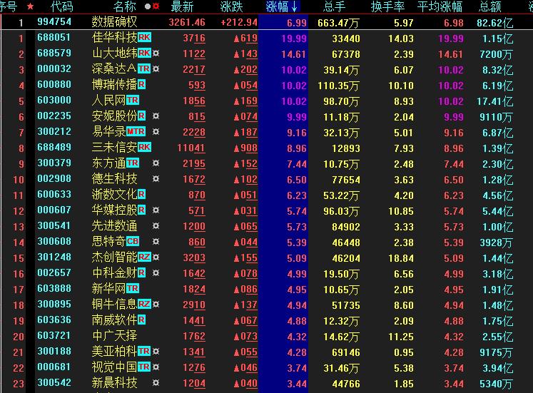 具體看,截至1月3日上午收盤,數(shù)據(jù)確權(quán)板塊表現(xiàn)搶眼,漲幅達6.99%。其中,佳華科技、深桑達A、博瑞傳播、人民網(wǎng)、安妮股份等多只概念股集體漲停。