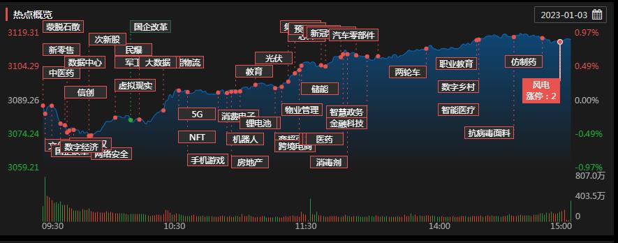 對于大盤的走勢,排排網(wǎng)財(cái)富研究部副總監(jiān)劉有華告訴記者,今日反彈不改A股震蕩格局,本周市場邁入新的一年,距離春節(jié)長假也僅剩3個(gè)交易周。2023年伊始,機(jī)構(gòu)將開始新的一年布局,部分機(jī)構(gòu)重倉板塊的波動(dòng)可能會放大。在經(jīng)歷此前超跌反彈后,當(dāng)前指數(shù)上方多條均線匯聚,疊加春節(jié)前部分資金持幣避險(xiǎn)的需求,本周預(yù)計(jì)仍以區(qū)間內(nèi)震蕩為主,市場有可能再次回踩3000點(diǎn)附近確認(rèn)底部,春節(jié)前市場預(yù)計(jì)以低位不斷反復(fù)震蕩構(gòu)造底部為主,為春季行情蓄力。