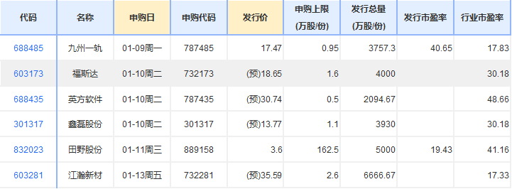 新股方面,根據(jù)發(fā)行安排,A股市場下周將有6只新股申購。