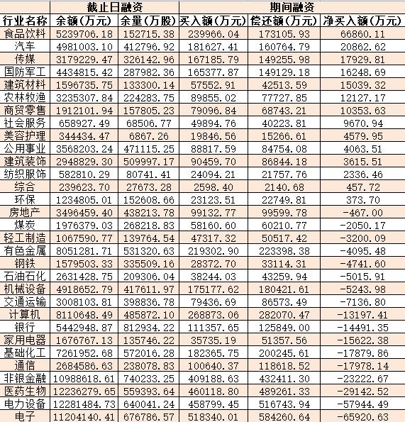 表:1月17日申萬一級行業(yè)兩融交易情況: