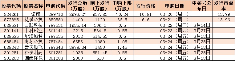 根據(jù)發(fā)行安排,下周(3月20日-24日)有9只新股申購,包括科創(chuàng)板新股4只、創(chuàng)業(yè)板新股3只、北交所新股2只。