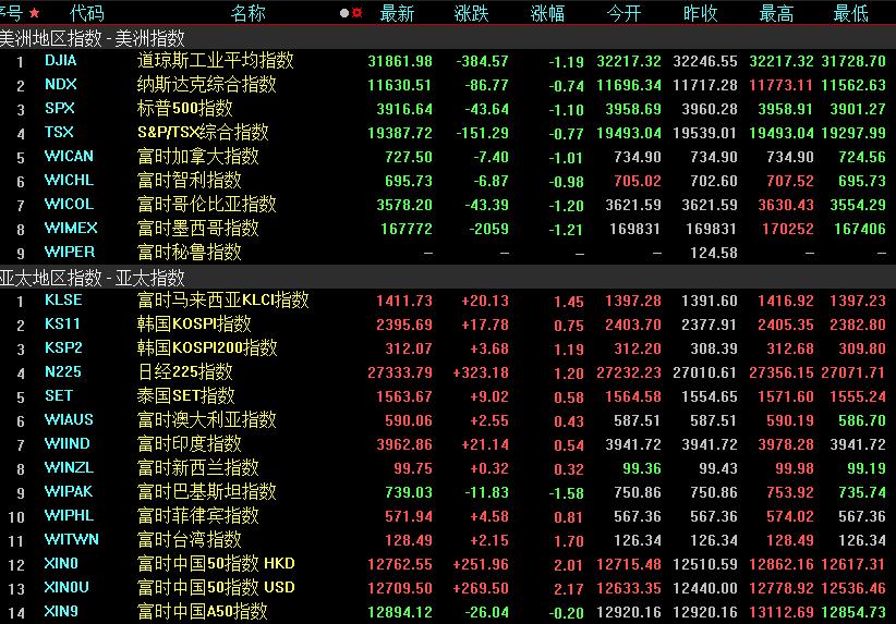 周五,美國三大股指全線收跌,道指跌1.19%報(bào)31861.98點(diǎn),標(biāo)普500指數(shù)跌1.1%報(bào)3916.64點(diǎn),納指跌0.74%報(bào)11630.51點(diǎn)。本周,道指跌幅達(dá)0.15%,標(biāo)普500指數(shù)漲幅達(dá)1.43%,納指漲幅達(dá)4.41%。