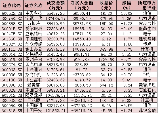 表:今日滬、深股通前十大成交活躍股交易情況: