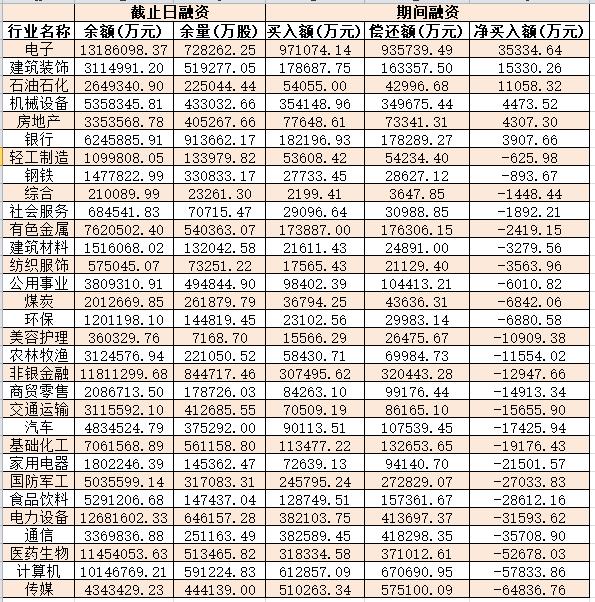 表:5月19日申萬一級行業(yè)兩融交易情況:
