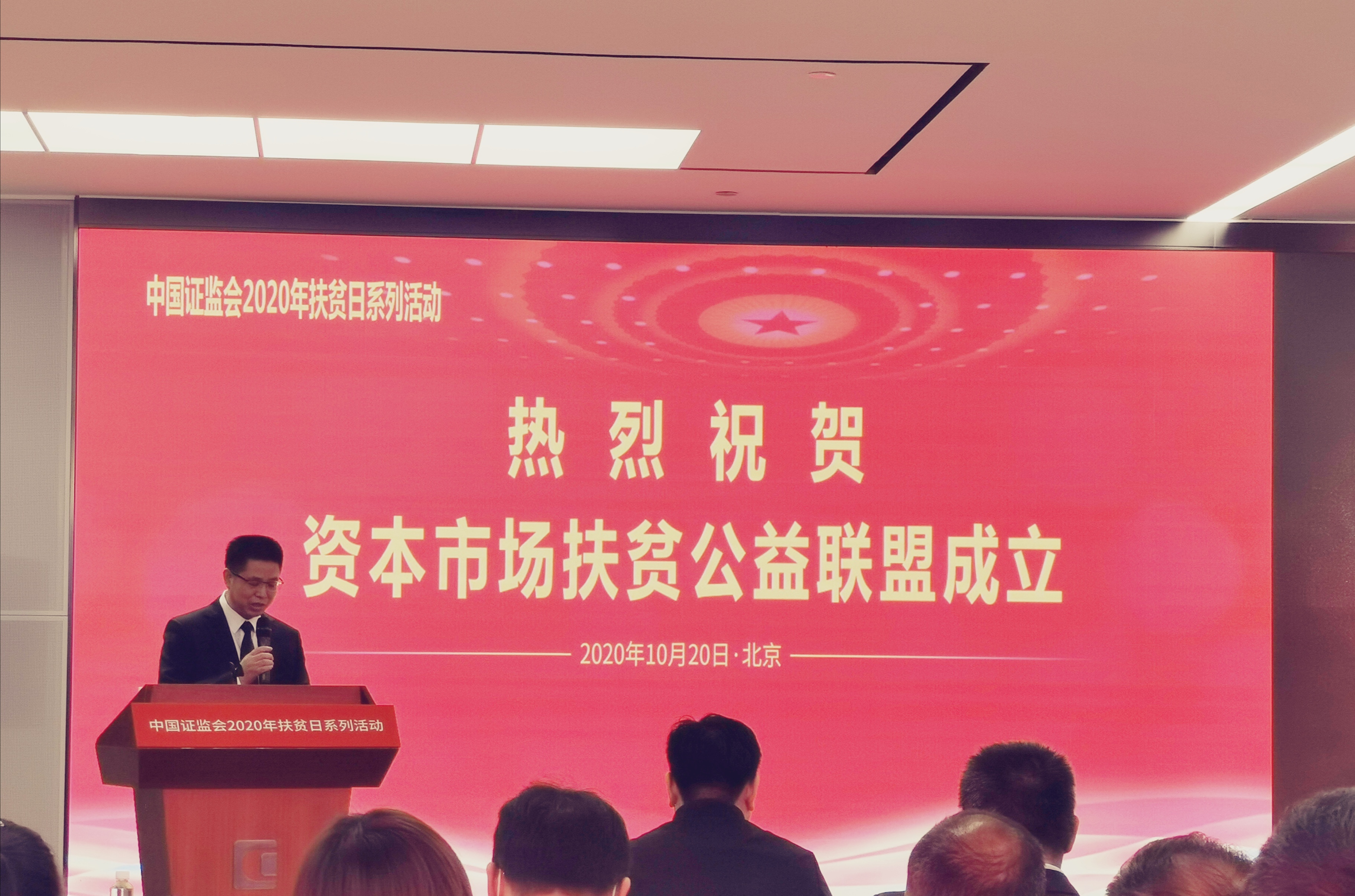 10月20日,中國證監(jiān)會(huì)在北京順利舉辦資本市場(chǎng)“一縣(司)一品”線上展銷活動(dòng)暨“資本市場(chǎng)扶貧公益聯(lián)盟”成立大會(huì)。大會(huì)在新保利大廈舉行,采取“現(xiàn)場(chǎng)活動(dòng)+云直播”的形式。中國人民銀行、銀保監(jiān)會(huì)、證監(jiān)會(huì)、中投公司、建設(shè)銀行、農(nóng)業(yè)銀行、工商銀行、中國銀行、交通銀行、中國證券業(yè)協(xié)會(huì)、中國期貨業(yè)協(xié)會(huì)、中國上市公司協(xié)會(huì)、中國證券投資基金業(yè)協(xié)會(huì)、證券公司代表、期貨公司代表等近100家單位參會(huì)。