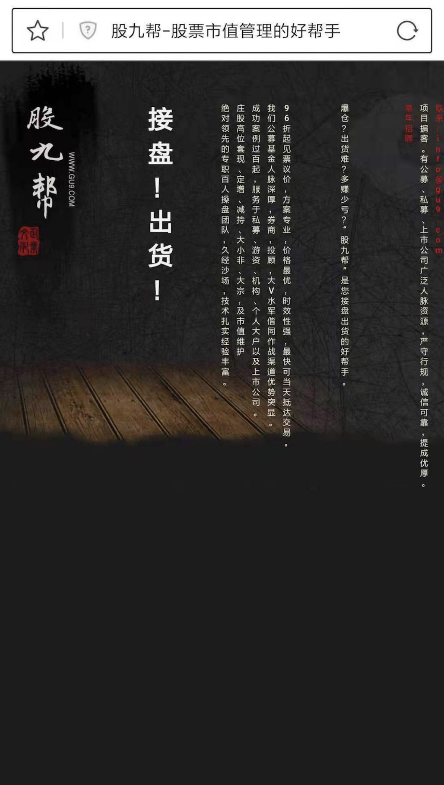 “盤(pán)后票網(wǎng)站有了影響力之后,吳承澤成立了股九幫項(xiàng)目,專門(mén)收取傭金幫別人出貨。吳承澤前一天在盤(pán)后票網(wǎng)站上掛出要出貨的股票,第二天莊家就可以出貨??梢赃x擇由吳承澤團(tuán)隊(duì)來(lái)操作賬戶,也可以莊家自己操作賬戶。”陳偉杰進(jìn)一步解釋道。
