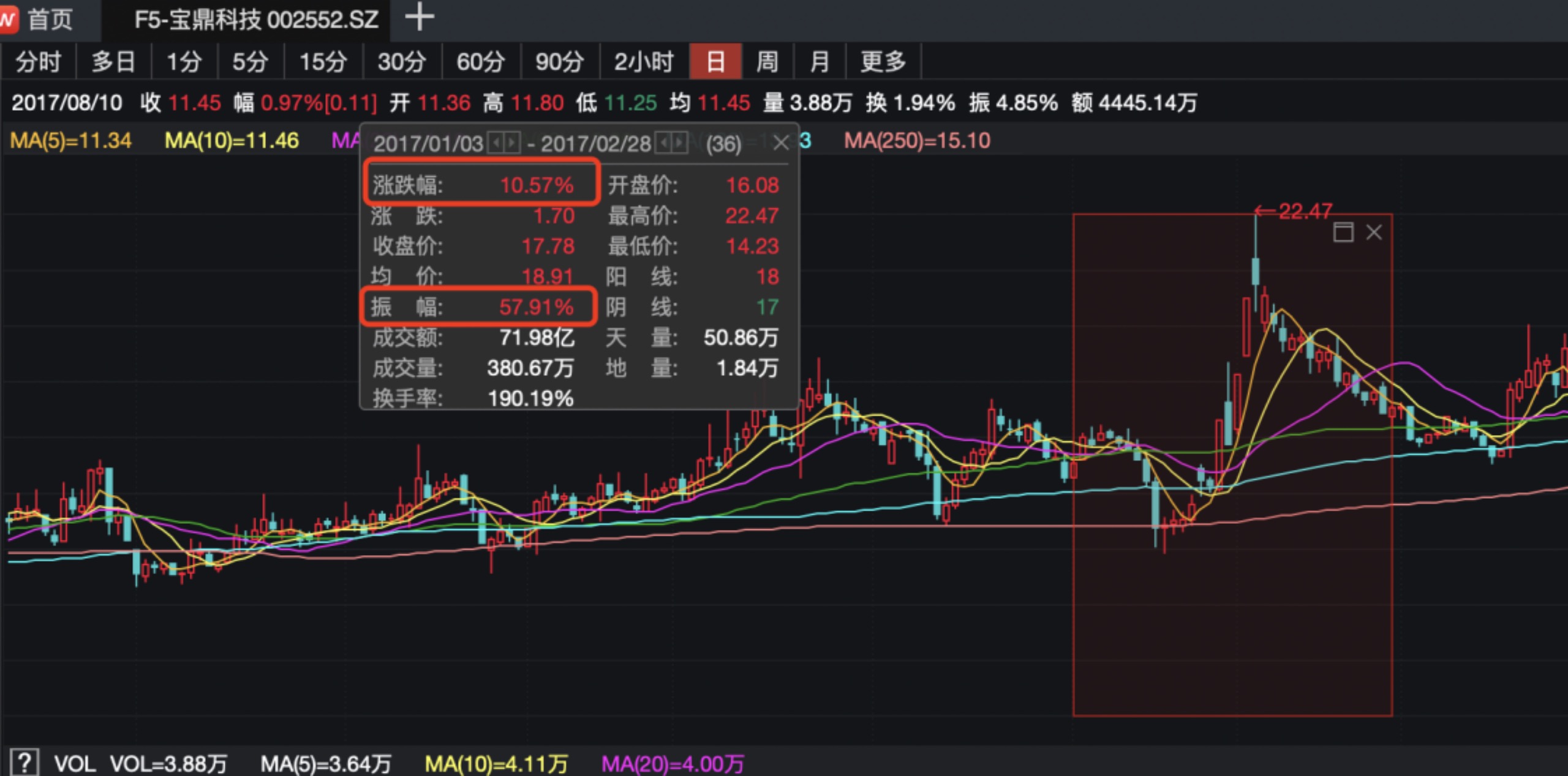 圖為2017年1月份至2月份,吳承澤團(tuán)伙連續(xù)交易“寶鼎科技”時(shí)該股走勢(shì)