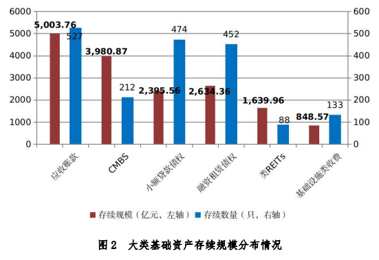 截至2023年1月底,存續(xù)企業(yè)資產(chǎn)證券化產(chǎn)品2206只,存續(xù)規(guī)模19540.34億元,存續(xù)規(guī)模較上月增長0.31%。按基礎(chǔ)資產(chǎn)二級分類來看,應(yīng)收賬款、商業(yè)不動產(chǎn)抵押貸款(CMBS)、小額貸款債權(quán)、融資租賃債權(quán)、類REITs以及基礎(chǔ)設(shè)施類收費(fèi)存續(xù)規(guī)模合計16503.08億元,占總存續(xù)規(guī)模的84.46%。基礎(chǔ)設(shè)施公募REITs、保障房、購房尾款等其他類別基礎(chǔ)資產(chǎn)存續(xù)規(guī)模合計3037.26億元,占總存續(xù)規(guī)模的15.54%。