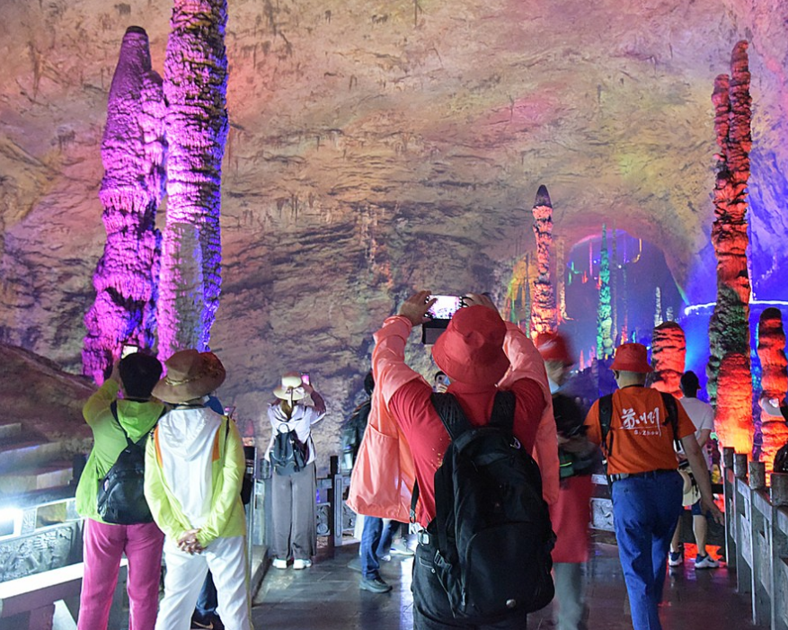 游客們在張家界溶洞中體驗人間仙境(供圖:張家界市人民政府)