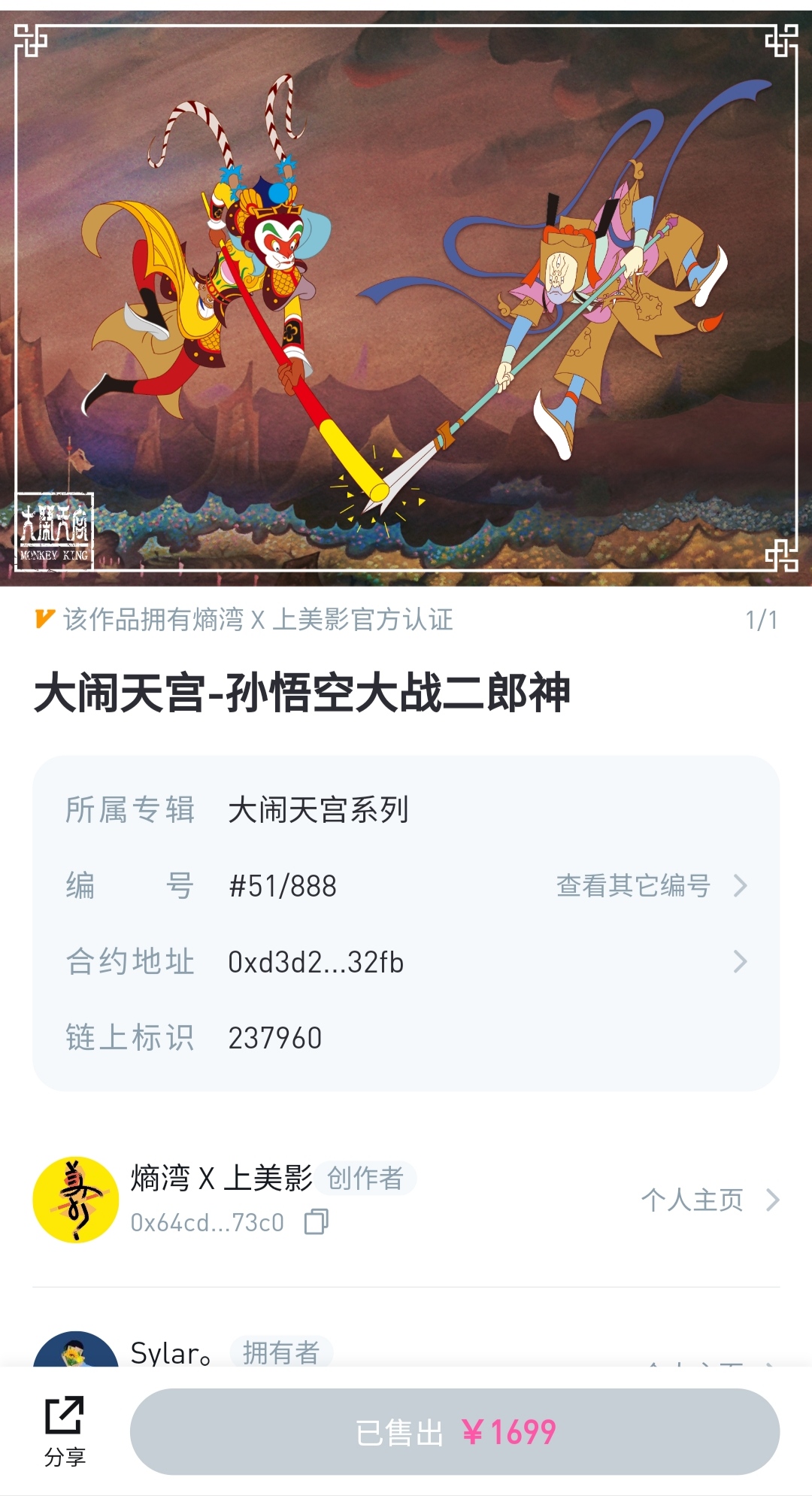 售價39元、限量2萬份、NFT作品……這吸引了大量的收藏愛好者,也不乏像余軍這樣的投機者。沒搶到手,余軍到現(xiàn)在仍耿耿于懷:“這IP絕對是現(xiàn)在大廠發(fā)售的NFT作品中的天花板了,題材值錢,并且是3D展示。二級市場至少四位數(shù)起,編號好的五位數(shù)都正常。”