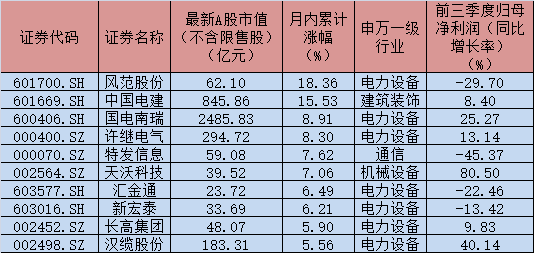 截至12月14日,A股特高壓產(chǎn)業(yè)鏈公司共有72家,合計市值1.04萬億元。其中,風范股份、中國電建月內(nèi)累計漲幅均超15%,國電南瑞、許繼電氣、特發(fā)信息、天沃科技、匯金通、新宏泰、長高集團、漢纜股份等個股月內(nèi)累計上漲5%以上。