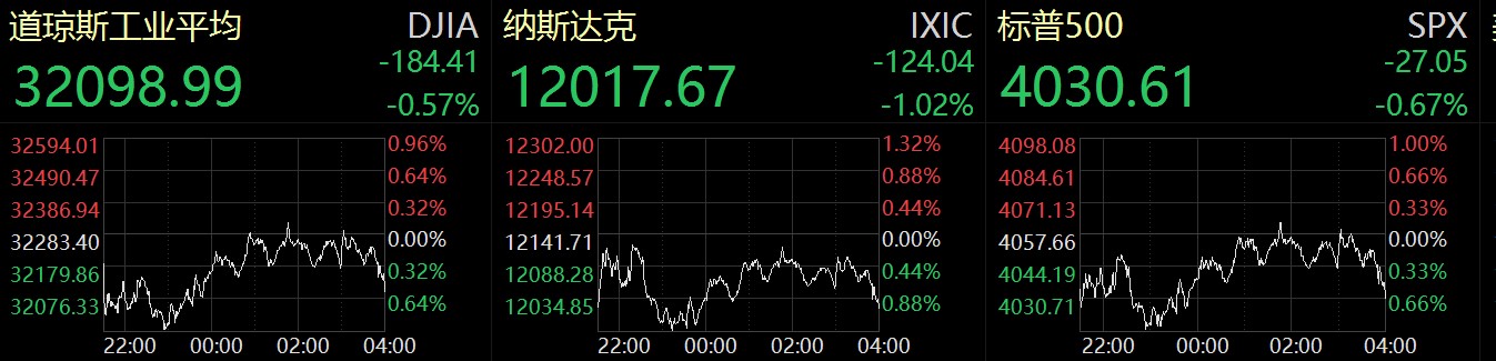 個(gè)股來(lái)看,科技股普跌,超威半導(dǎo)體跌2.95%,英偉達(dá)跌2.82%,蘋(píng)果跌1.37%,微軟跌1.07%,推特跌1.04%,谷歌-C跌0.86%,亞馬遜跌0.73%;中概股漲跌不一,拼多多漲14.71%,高途漲11.73%,名創(chuàng)優(yōu)品漲4.16%,知乎漲2.13%,新東方漲0.71%,嗶哩嗶哩跌5.11%,每日優(yōu)鮮跌7.69%,網(wǎng)易有道跌9.29%。