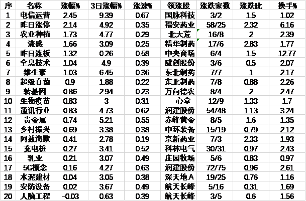 從板塊走勢(shì)來(lái)看,截至上午收盤,有19類板塊上漲,占比5.60%,電信運(yùn)營(yíng)(2.45%)、昨日漲停(2.14%)、農(nóng)業(yè)種植(1.73%)等板塊居前3位;有320類板塊下跌,光刻膠(-5.43%)、MLCC(-5.12%)、HIT電池(-4.55%)等板塊居前3。