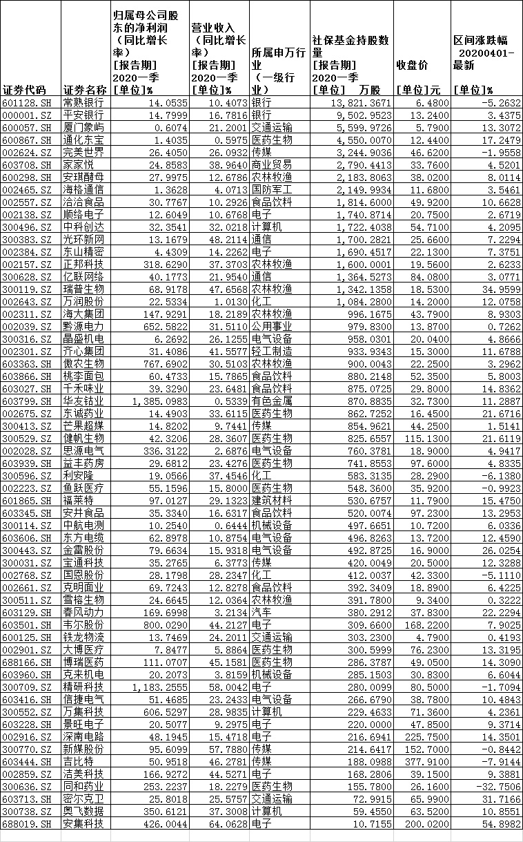 表:社?;鹨患径瘸钟械?9只雙增長(zhǎng)股