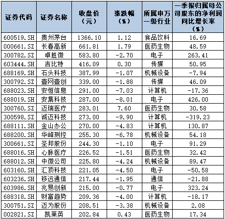 首先,業(yè)績是基礎(chǔ)。在74家股價在100元以上的公司中,有68家公司2019年凈利潤實(shí)現(xiàn)同比增長,占比超九成。與此同時,44家公司2020年一季度凈利潤也實(shí)現(xiàn)同比增長,聞泰科技、牧原股份、韋爾股份、碩世生物、中新賽克等5家公司2020年一季度凈利潤同比增幅均超600%。