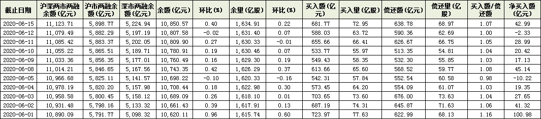 表:6月以來(lái)兩融資金變化情況