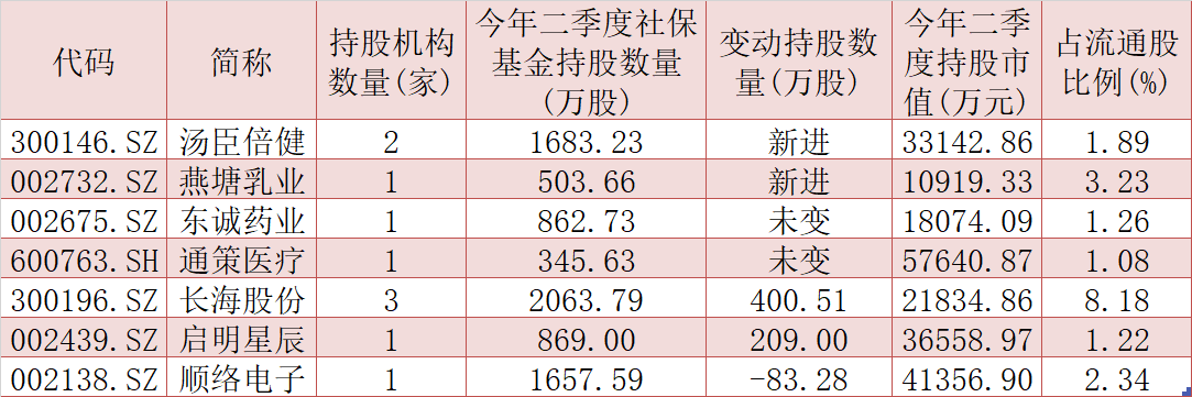 表:本周獲得機(jī)構(gòu)調(diào)研且今年二季度被社保基金持倉(cāng)的個(gè)股