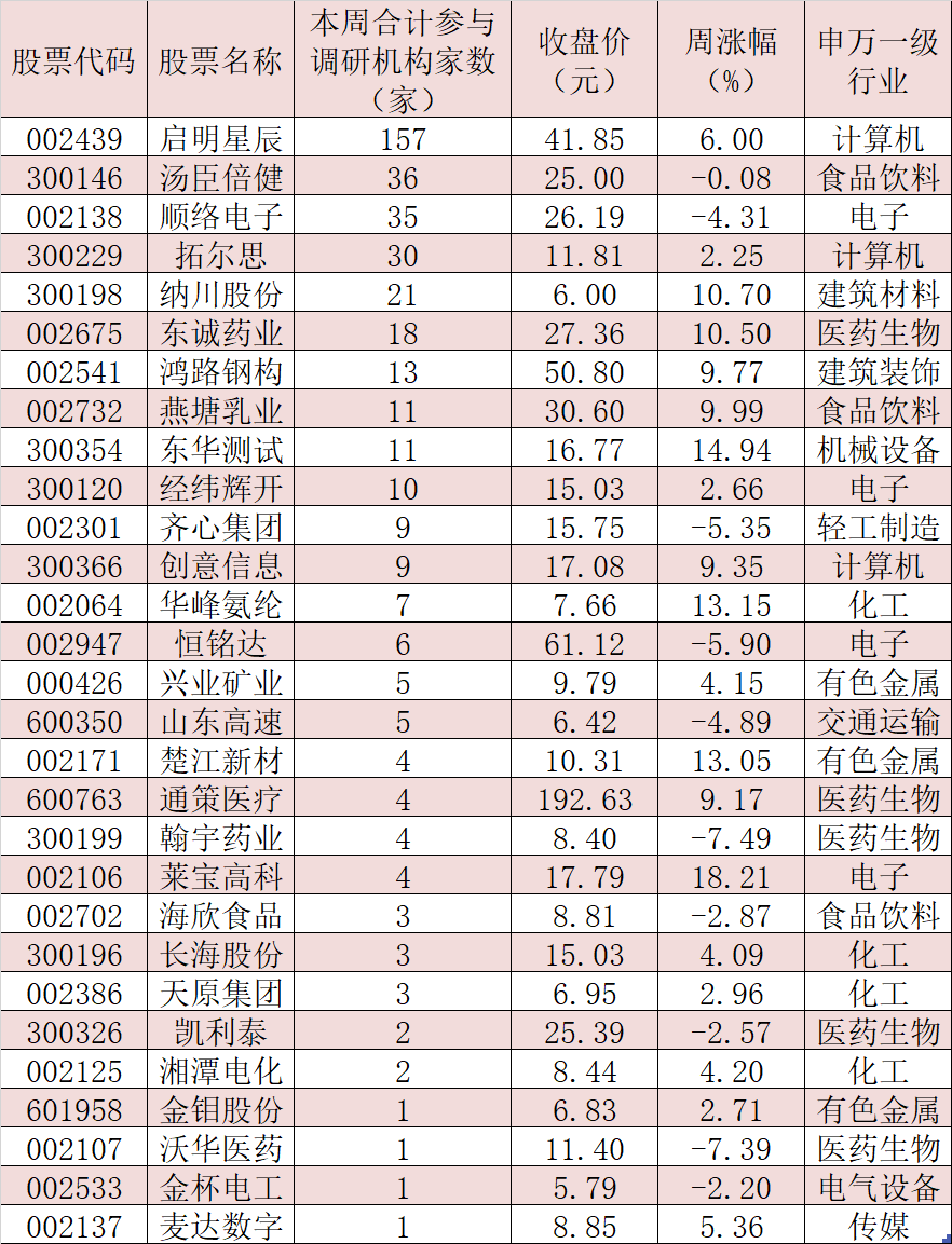 表:本周獲得機(jī)構(gòu)調(diào)研的個(gè)股一覽
