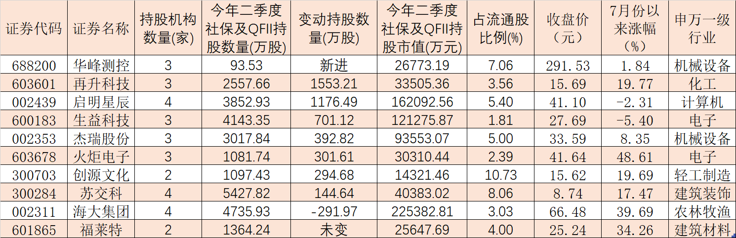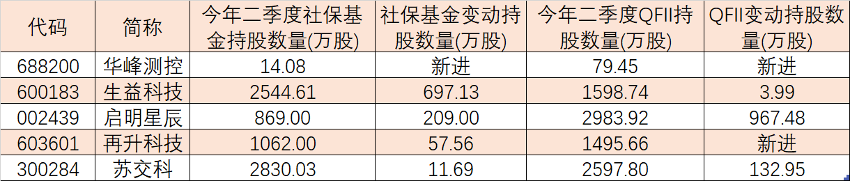 表:今年二季度獲得社保基金及QFII集體增持的個股