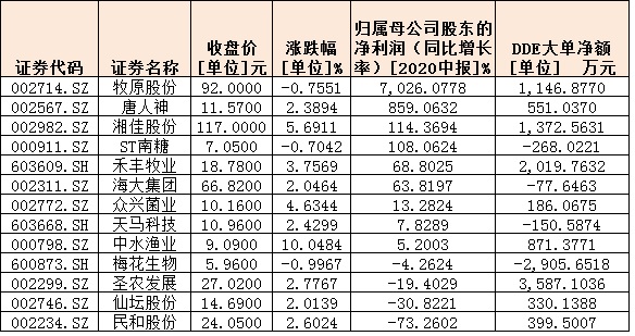 《證券日報》記者根據(jù)同花順統(tǒng)計發(fā)現(xiàn),截至8月13日,有13家農(nóng)業(yè)類上市公司披露中報業(yè)績,其中,9家公司上半年凈利潤實現(xiàn)同比增長,牧原股份以上半年凈利潤同比增長7026.08%位居首位,緊隨其后的是唐人神、湘佳股份和ST南糖等3家公司上半年凈利潤同比增長均超100%,分別為,859.06%、114.37%和108.06%。