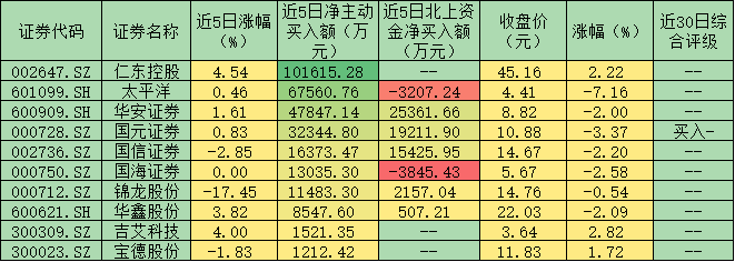 從資金流向來看,非銀金融板塊近5個交易日資金整體呈凈流出態(tài)勢,整體大單資金凈流出197.02億元,不過,仍有10只個股呈資金凈流入,其中,有包括仁東控股(101615.28萬元)、太平洋(67560.76萬元)、華安證券(47847.14萬元)等在內(nèi)的7只個股資金凈流入額超1億元。