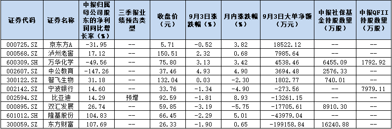 可以看到,除北上資金外,場內(nèi)短線資金也對(duì)上述個(gè)股較為關(guān)注,9月3日,有5只個(gè)股呈現(xiàn)大單資金凈流入狀態(tài),合計(jì)吸金3.65億元,在資金的助力下,上述5只個(gè)股當(dāng)日股價(jià)表現(xiàn)全部跑贏大盤(滬指跌幅0.58%),其中,中公教育、萬華化學(xué)、瀘州老窖等個(gè)股漲幅更是超過2%。