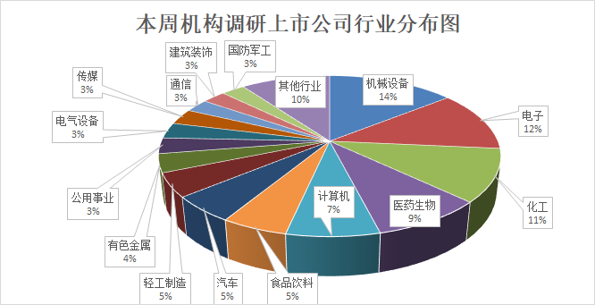 從行業(yè)角度來(lái)看,上述本周獲得機(jī)構(gòu)調(diào)研的189只個(gè)股主要扎堆在機(jī)械設(shè)備、電子、化工、醫(yī)藥生物、計(jì)算機(jī)、食品飲料、汽車(chē)等七行業(yè),涉及個(gè)股數(shù)量分別為27只、23只、20只、17只、14只、10只和10只。綜合來(lái)看,以電子、計(jì)算機(jī)為代表的科技龍頭公司以及醫(yī)藥生物、食品飲料等代表的消費(fèi)類(lèi)龍頭公司仍然是本周機(jī)構(gòu)調(diào)研的重點(diǎn)。