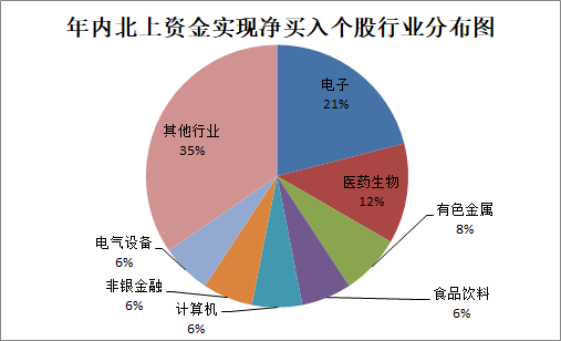 行業(yè)特征方面,上述81只年內(nèi)北上資金青睞個股主要扎堆在電子、醫(yī)藥生物、有色金屬等三大行業(yè),涉及個股數(shù)量分別為17只、10只、6只。另外,食品飲料、計算機、非銀金融、電氣設備等行業(yè)也均有5只個股入圍??梢钥吹剑葬t(yī)藥生物、食品飲料等為代表的大消費類龍頭白馬股和科技類龍頭股成為年內(nèi)北上資金重點布局的領域。
