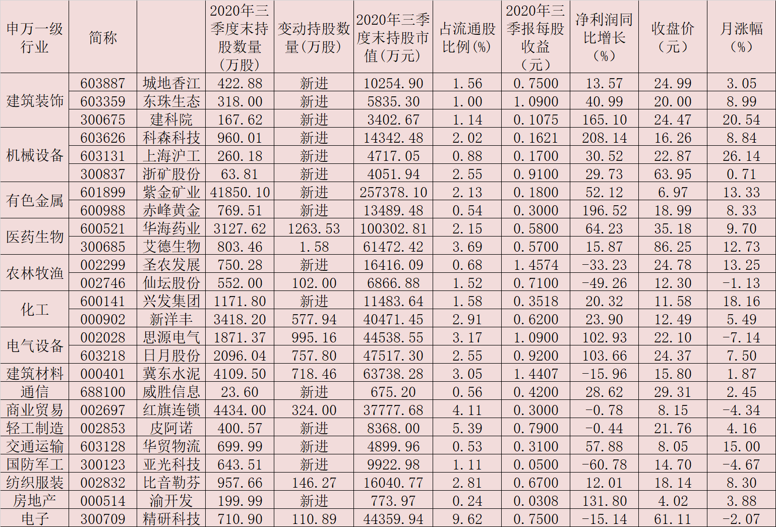 表:今年三季度獲社?;鹪龀值膫€(gè)股一覽