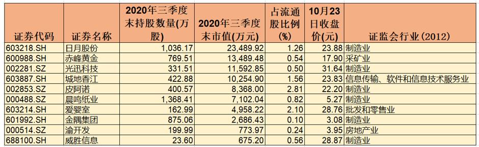 表:2020年三季度獲養(yǎng)老基金新進(jìn)的個(gè)股一覽