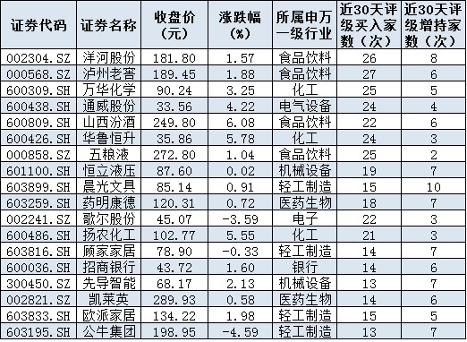 與此同時(shí),出色的表現(xiàn)也受到機(jī)構(gòu)的高度關(guān)注。統(tǒng)計(jì)顯示,在上述66只強(qiáng)勢(shì)股中,機(jī)構(gòu)近30日內(nèi)給予“買入”或“增持”以上評(píng)級(jí)的公司達(dá)61家,占比逾九成,其中,推薦次數(shù)超過(guò)10次的公司達(dá)41家。