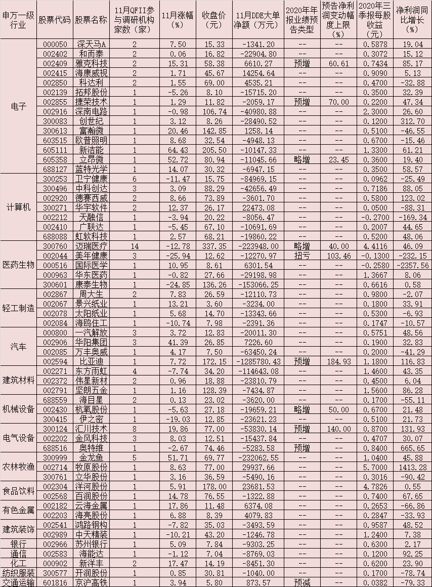 表:11月份獲QFII調(diào)研的個(gè)股一覽
