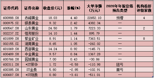 截至12月8日收盤,有3只黃金股披露了2020年年報業(yè)績預(yù)告,其中赤峰黃金和*ST榮華業(yè)績預(yù)喜。