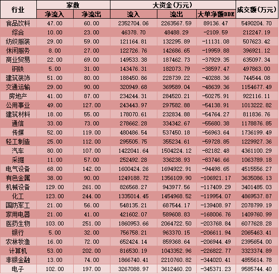 二、周二(12月8日)申萬(wàn)一級(jí)行業(yè)大單資金流向