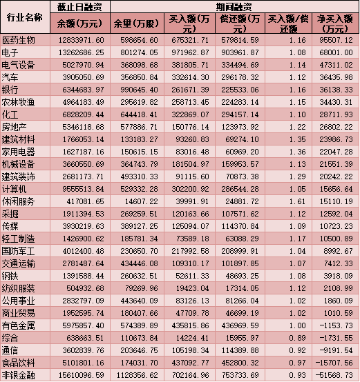 六、截至12月7日申萬(wàn)一級(jí)行業(yè)兩融交易情況