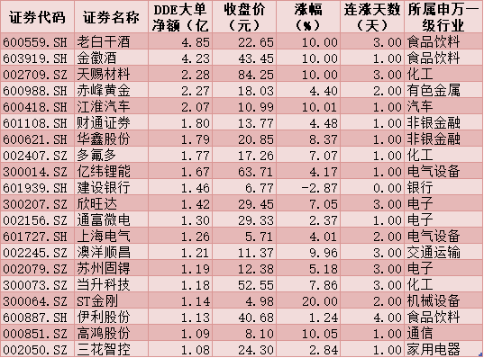 一、周二(12月8日)DDE大單資金凈買(mǎi)入TOP20