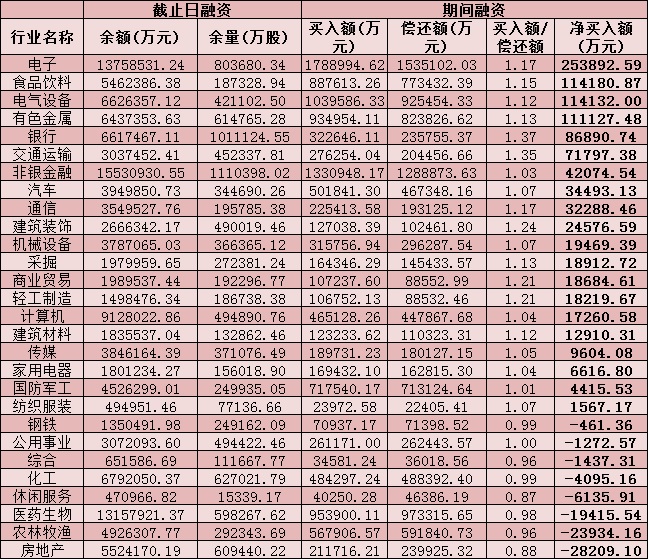 六、截至1月5日申萬級(jí)一級(jí)行業(yè)兩融交易情況